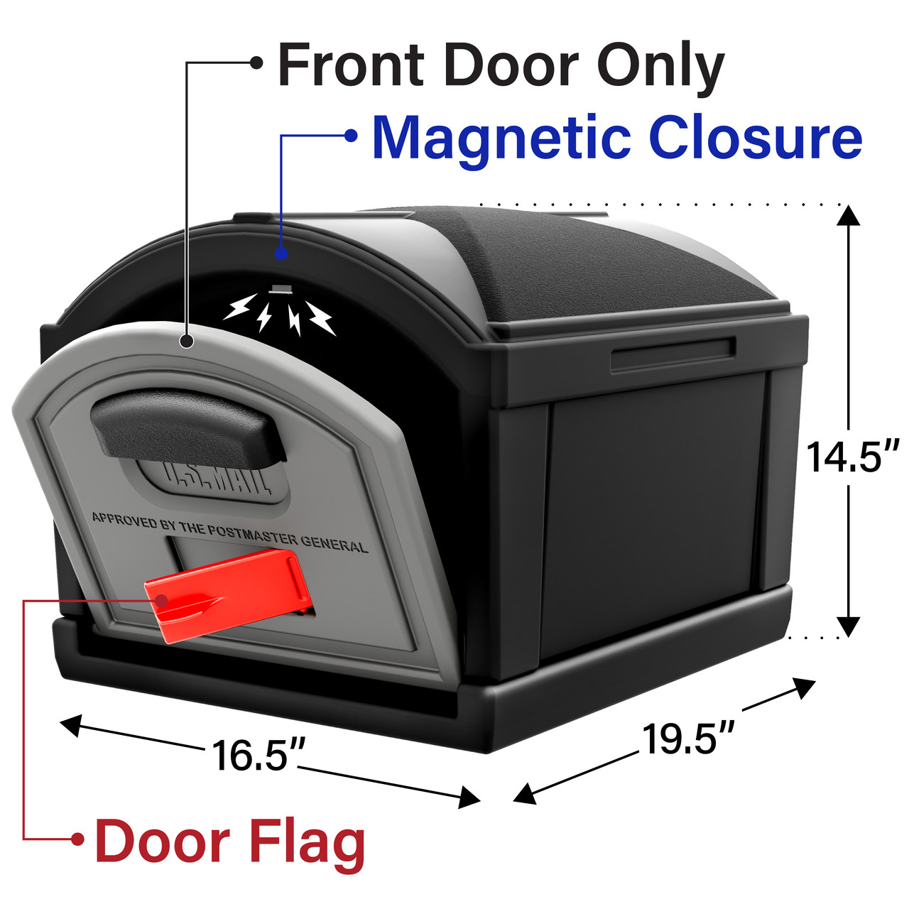 MAIL FLAG INDICATOR: Features a front-facing door with magnetic latch and built-in red mail pick-up flag indicator, providing easy access to mail and clear notification for outgoing items; includes number decals