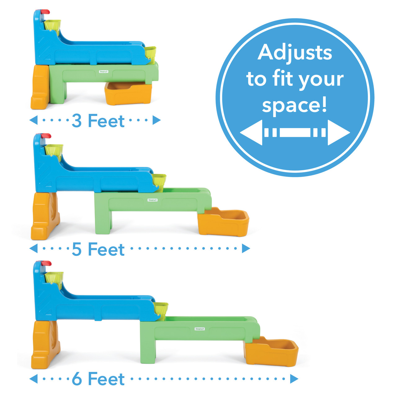 FITS SMALL OR LARGE SPACES: This kids water activity table expands to 6' for maximum water play potential and compresses to 3' for storage. Holds 5 gallons of water.