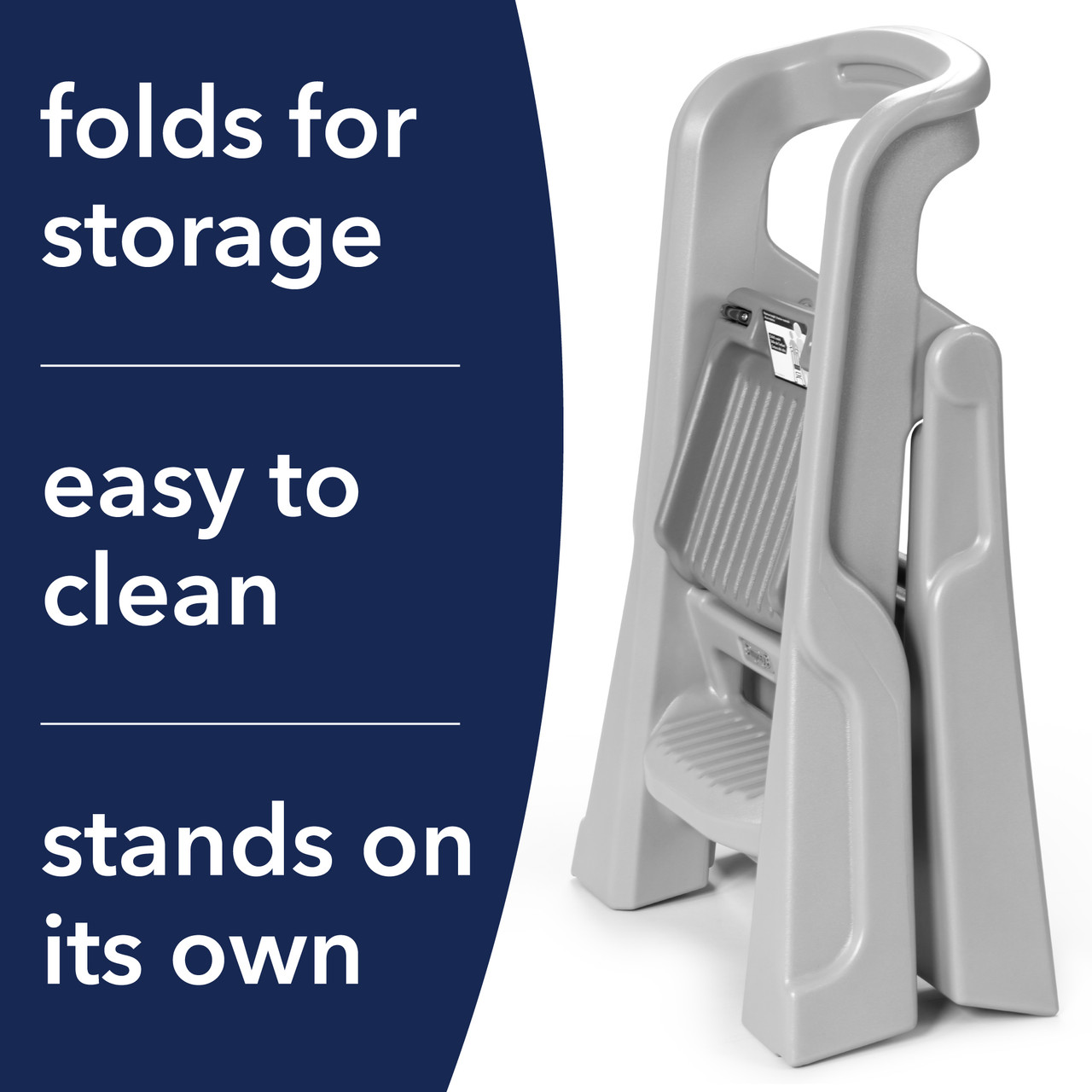 Introducing the Simplay3 Toddler Tower Folding Step Stool, a versatile and innovative step stool designed to enhance your child's independence and engagement in everyday tasks. Whether it's helping out in the kitchen, bathroom, or workspace, this sturdy step stool is the perfect companion for your little one. Assembling in under five minutes, this step stool for toddlers is great for busy caregivers and childcare environments. Engineered with safety in mind, it provides extra height and support wherever needed, ensuring your child's confidence as they explore their surroundings. Measuring at 34” x 21.5” x 20”, this foldable toddler tower is perfectly sized to reach countertops, making it suitable for children aged 18 months to 4 years. This kids step stool is practical and easy to clean and store. Its compact design allows it to be stored underneath most standard countertops, while its durable double-wall plastic construction ensures hassle-free maintenance.