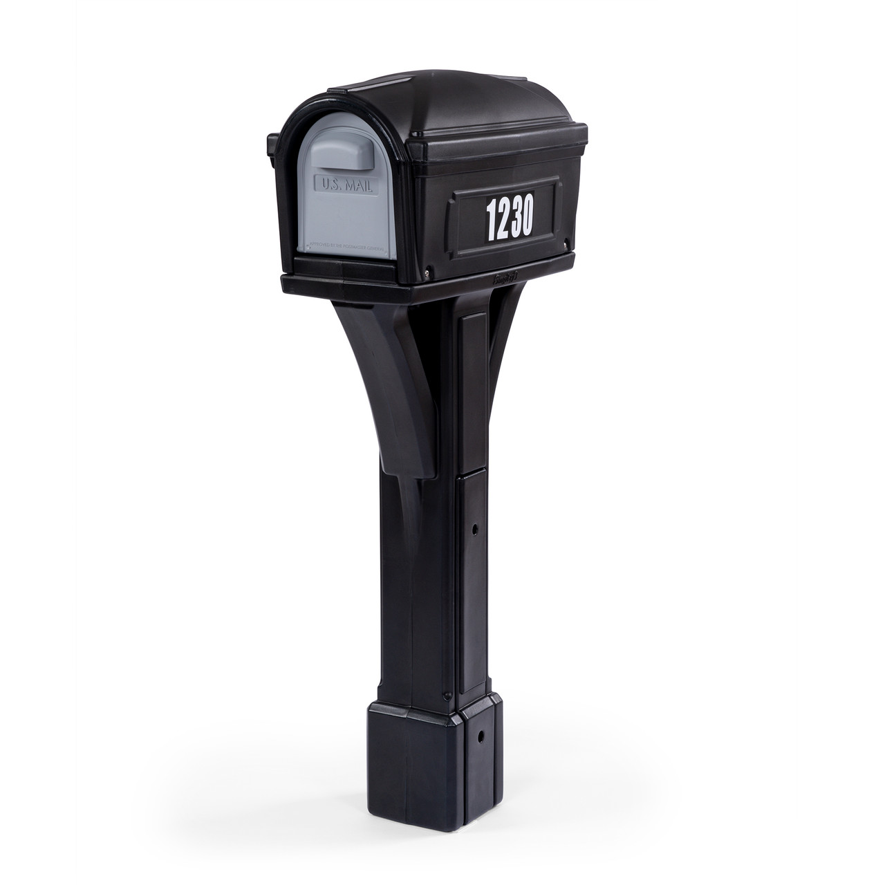 IN THE BOX: Mounting hardware, post cover, red flag mail indicator, and home address adhesive mailbox numbers included.