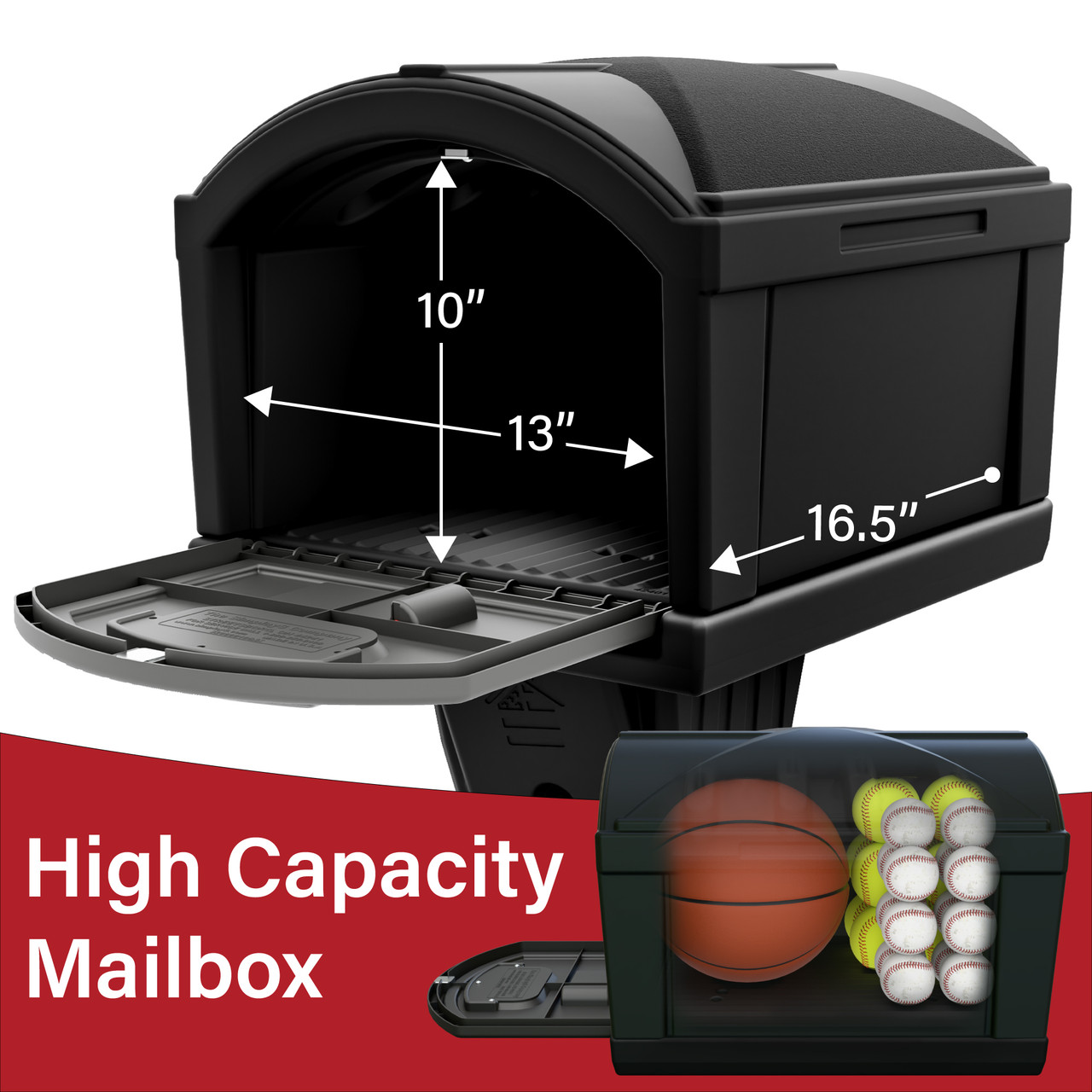 Upgrade your curb appeal with the Simplay3 American Home T4 Extra Large Capacity Mailbox, a perfect combination of classic style, durability, and convenience. This extra-large mailbox with post provides ample space for oversized packages, bulky envelopes, and daily mail deliveries, making it ideal for busy households. Its double-wall plastic construction ensures superior durability to withstand harsh weather and everyday use. The front door includes a mail pick-up flag for easy mail retrieval and outgoing notifications. Maintenance-free and resistant to rust, fading, and weather damage, this mailbox delivers reliable performance year-round. Designed with functionality and aesthetics in mind, the Simplay3 T4 XL Mailbox with post cover offers a practical, hassle-free solution for homeowners looking to enhance their outdoor spaces. Made in the USA.