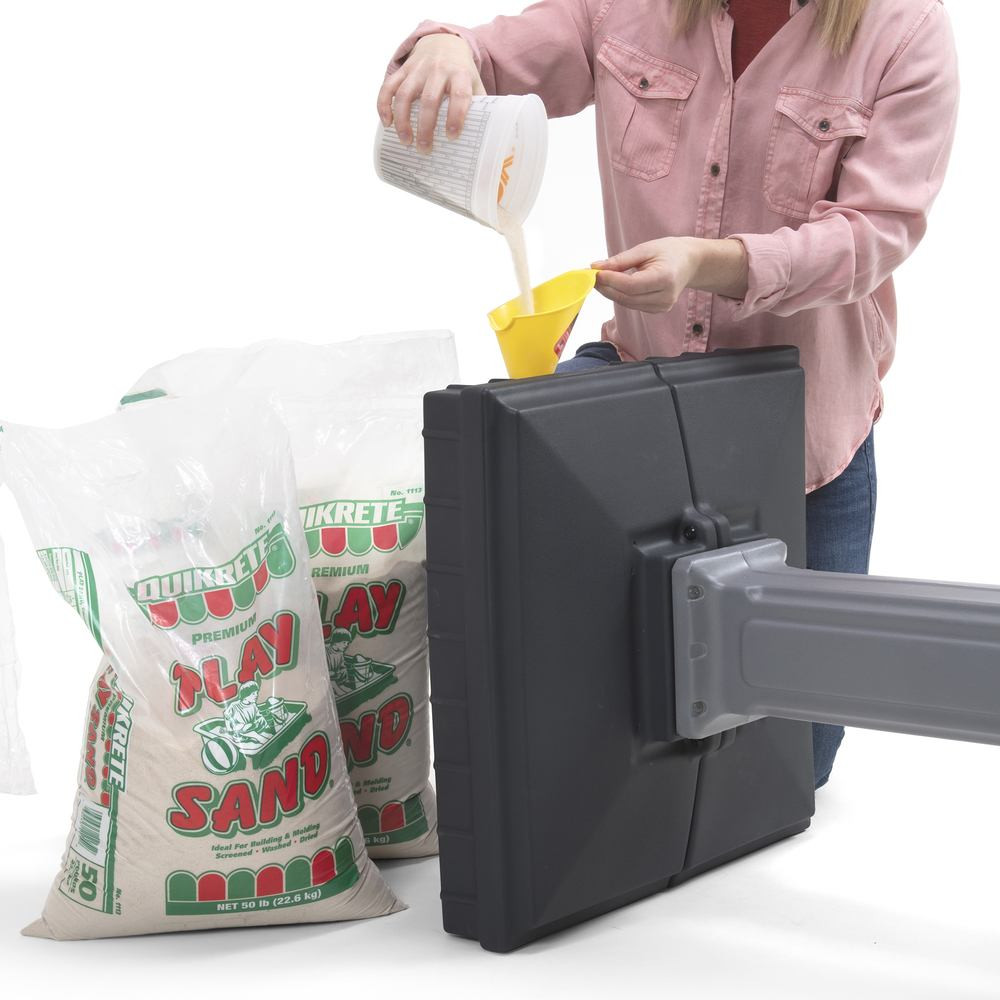 Super durable double wall molded construction is simple to assemble and install, 100 lbs. of dry sand required to secure base (sand not included)
