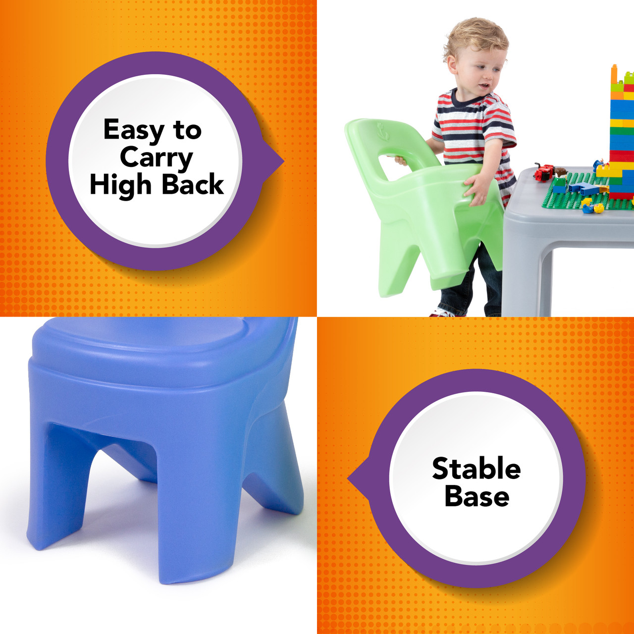 KID FRIENDLY: Designed to fit children of all ages and sizes, these kids’ play table chairs feature rounded edges and high backrests.