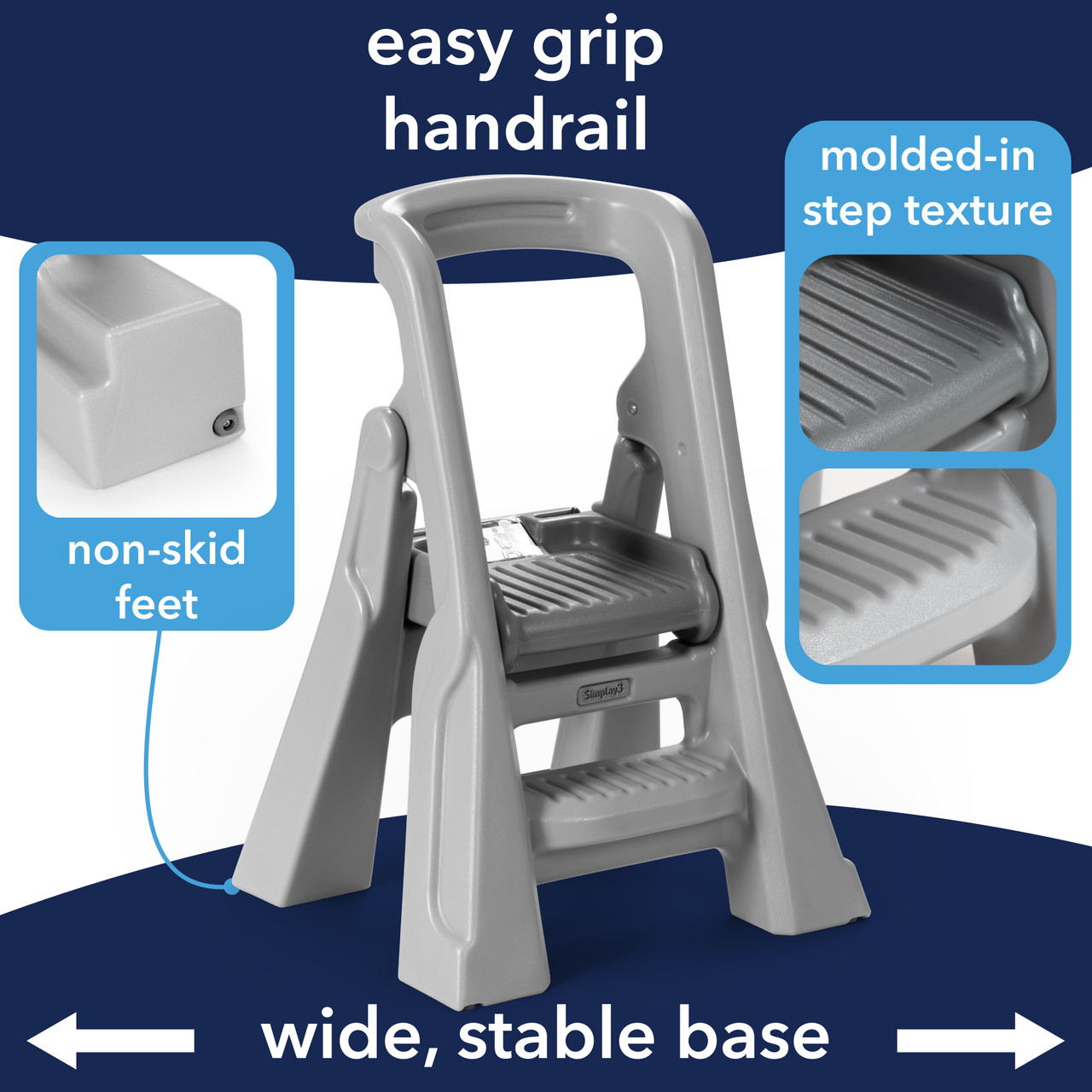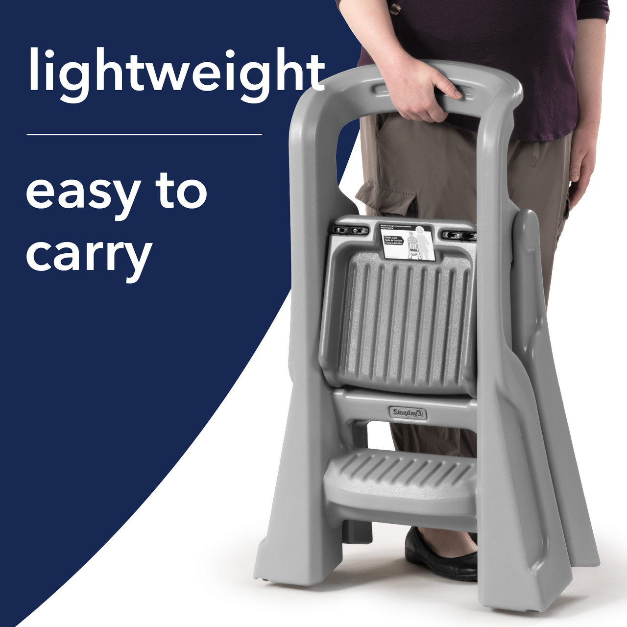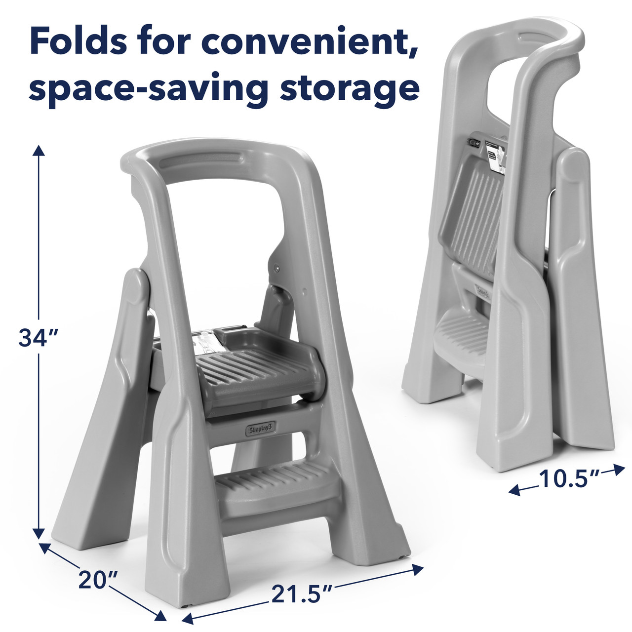 Introducing the Simplay3 Toddler Tower Folding Step Stool, a versatile and innovative step stool designed to enhance your child's independence and engagement in everyday tasks. Whether it's helping out in the kitchen, bathroom, or workspace, this sturdy step stool is the perfect companion for your little one. Assembling in under five minutes, this step stool for toddlers is great for busy caregivers and childcare environments. Engineered with safety in mind, it provides extra height and support wherever needed, ensuring your child's confidence as they explore their surroundings. Measuring at 34” x 21.5” x 20”, this foldable toddler tower is perfectly sized to reach countertops, making it suitable for children aged 18 months to 4 years. This kids step stool is practical and easy to clean and store. Its compact design allows it to be stored underneath most standard countertops, while its durable double-wall plastic construction ensures hassle-free maintenance.