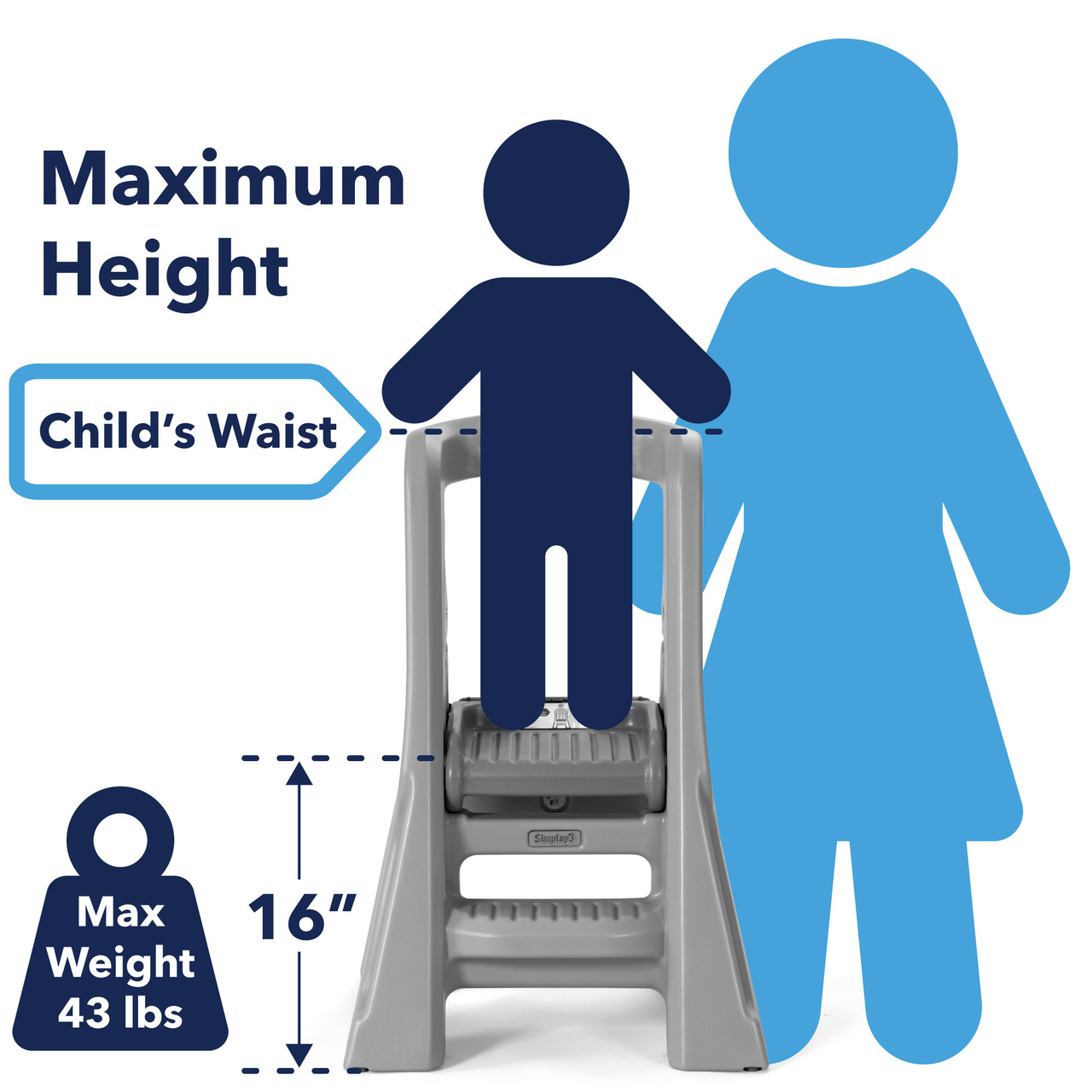 HOUSEHOLD TASKS: Measuring 34” x 21.5” x 20” with a step height of 16"; perfectly sized for little helpers to reach countertops for kitchen activities such as cooking or snacking, or bedtime routines in the bathroom